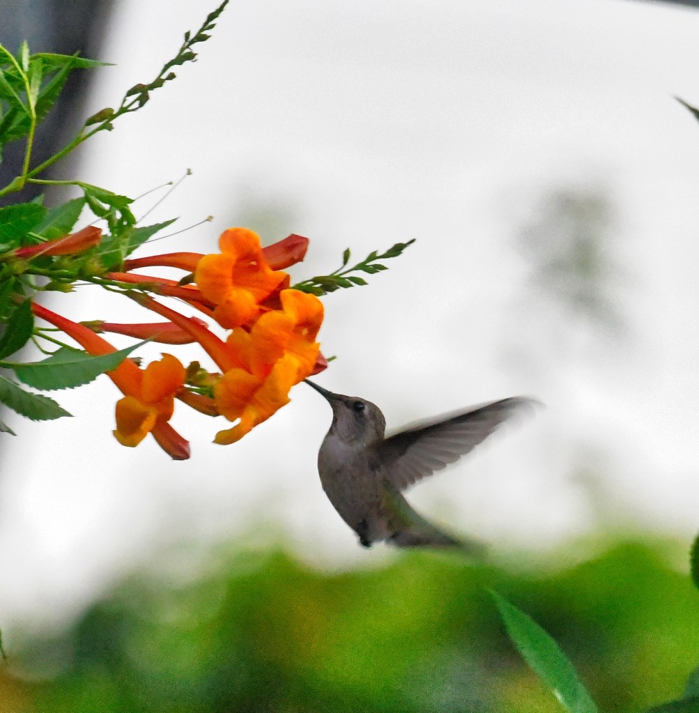 The nectar feeders are great, but should not be their only source of food. Some of our native Texas plants that they like are; Flame Acanthus, Coral Honeysuckle, Red Yucca, Turk’s Cap, Zinnias, Autumn Sage, Morning Glory, and many other nectar plants.