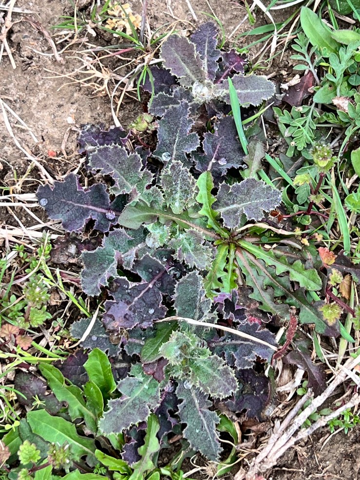 It’s fun to see how the cold weather affects the new leaves on some of the plants, like this prickly sowthistle. I didn’t get any photos of it, but the dewberries have bright red leaves right now, too. Everything will get back to normal soon.
