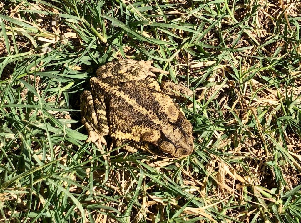 Once I got back in the house (this had occurred at the back door) I looked up the snake, and I’m pretty sure it is a western cottonmouth.* I’m glad I didn’t know that earlier or the toad would be dead.